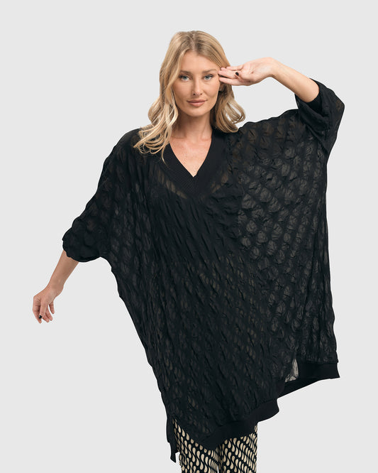 Pucker Chiffon Tunic Top, Black by Alembika
