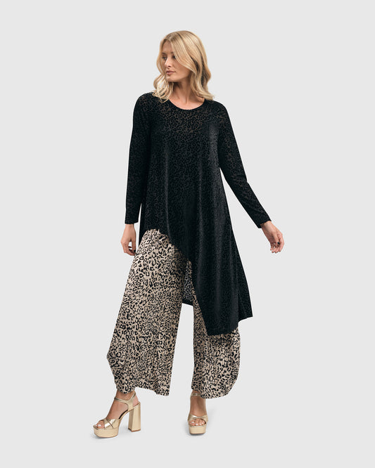 Leopard Velvet Hi-Lo Tunic Top, Black by Alembika