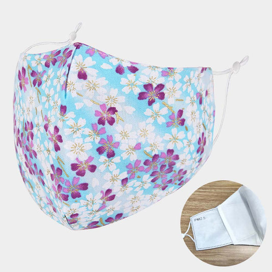Cotton Print Fashion Face Mask Floral Print Light Blue