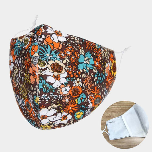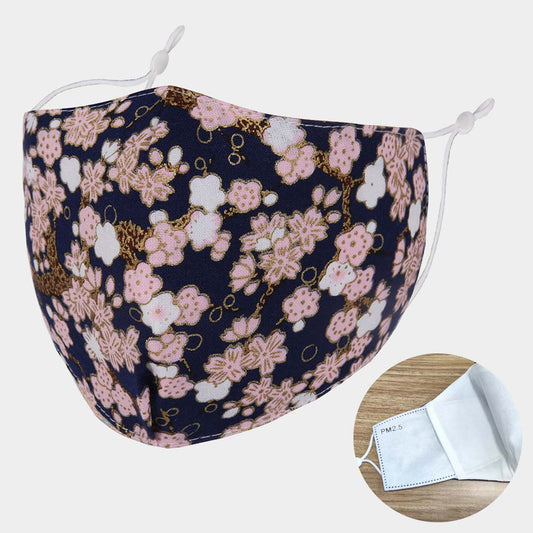 Cotton Print Fashion Face Mask Floral Print Navy/Multi