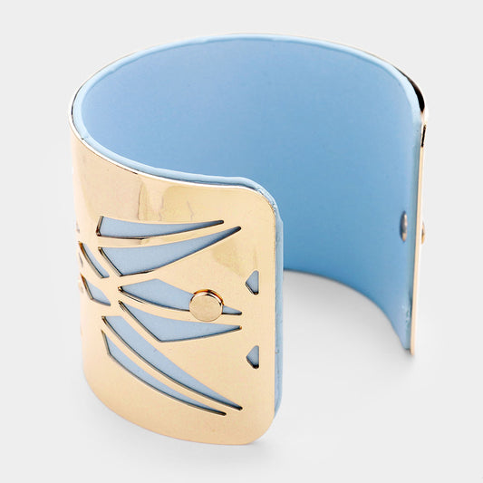 Vegan Leather GEOMETRIC Laser Cut Filigree Cuff Bracelet Blue