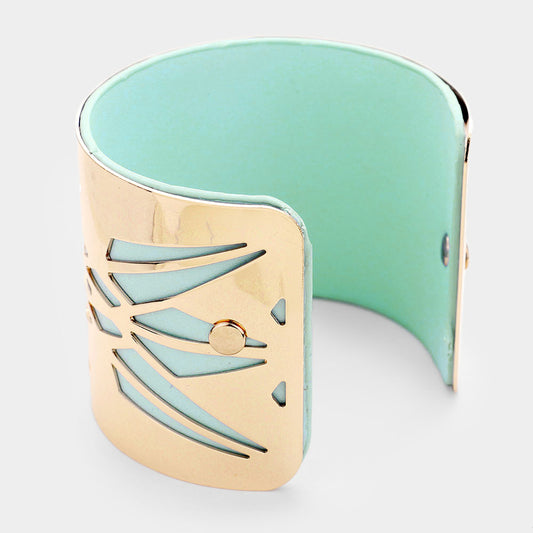Vegan Leather GEOMETRIC Laser Cut Filigree Cuff Bracelet Green
