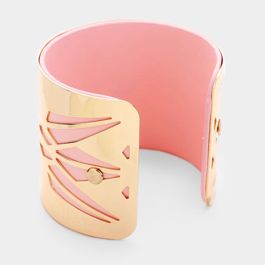 Vegan Leather GEOMETRIC Laser Cut Filigree Cuff Bracelet Pink