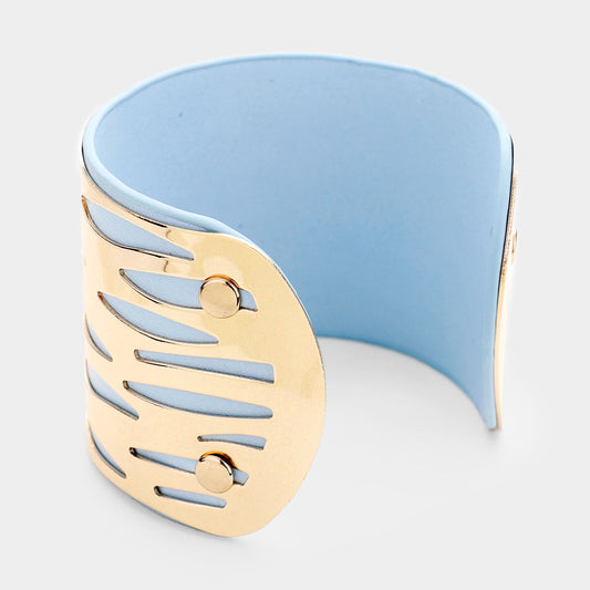 Vegan Leather Laser Cut Wave Filigree Cuff Bracelet Blue