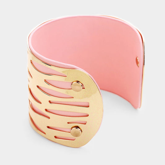 Vegan Leather Laser Cut Wave Filigree Cuff Bracelet Pink