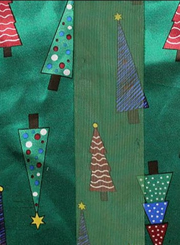 Holiday Satin Striped Christmas Tree Print Scarf Green Rectangle