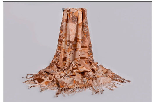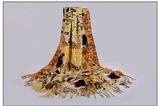 Art Printed Fall/Winter Scarf Klimt "The Kiss" Yellow/Coffee