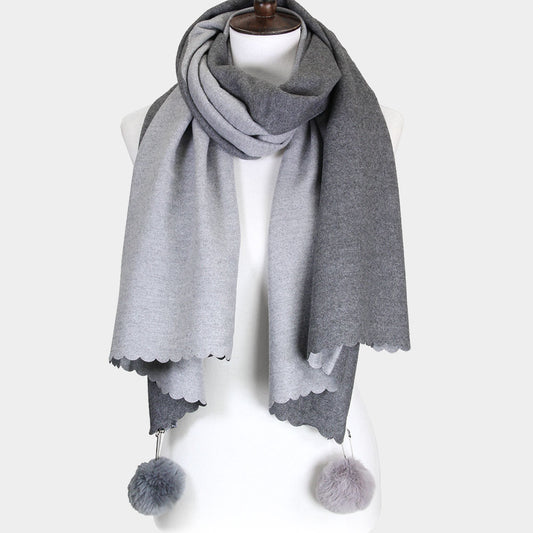 Fall/Winter Reversible Soft Scarf With Pom-Pom Accents Gray