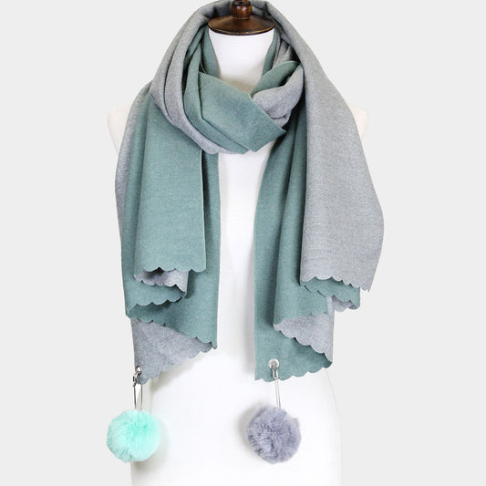 Fall/Winter Reversible Soft Scarf With Pom-Pom Accents Mint