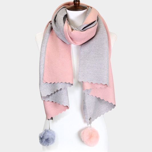 Fall/Winter Reversible Soft Scarf With Pom-Pom Accents Pink