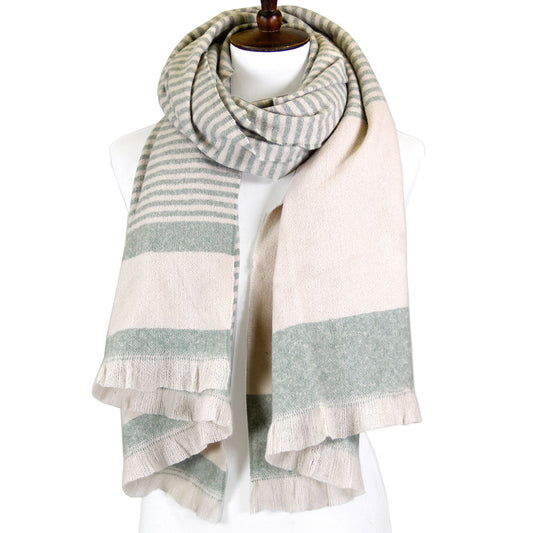 STRIPED BOUCLE OBLONG SCARF/Mint & Cream
