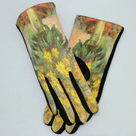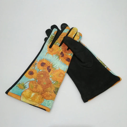 ART SMART TOUCH GLOVES "Van Gogh Art Gloves Still Life Flowers Yellow" PRINT