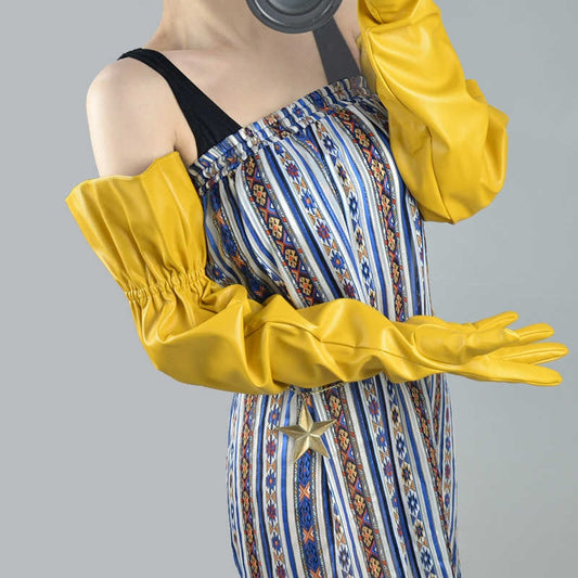 Lantern Sleeve Long Gloves Vegan Leather Womens Long Gloves Yellow