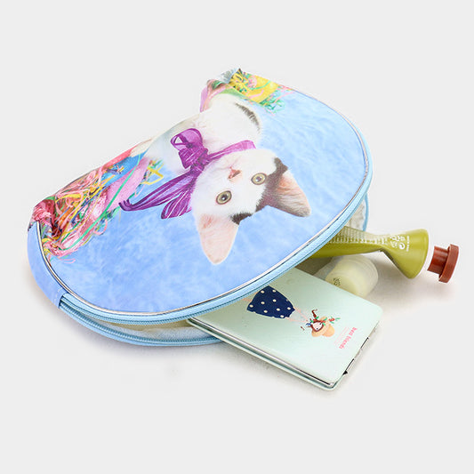 Cat Printed Cosmetic Bag Zippered Vinyl