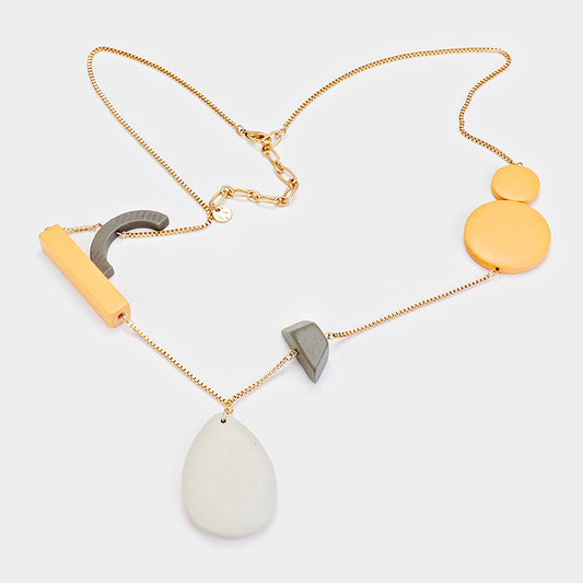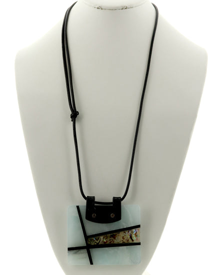 Long Leatherette Cord with Acrylic Geometric Pendant Necklace