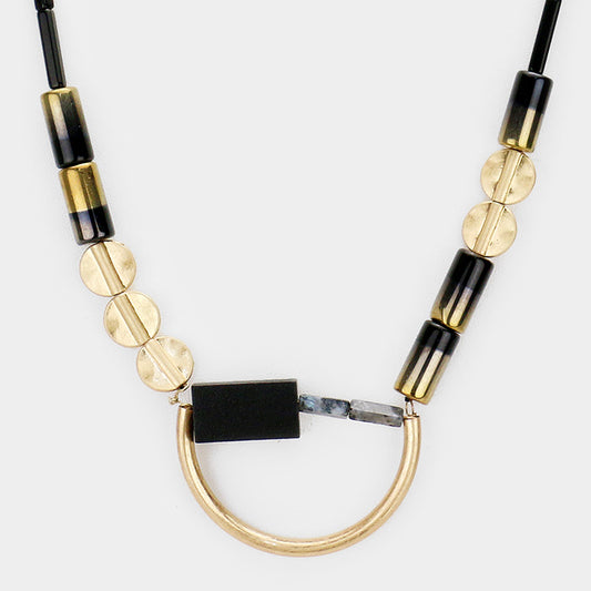 Recycled Rubber/Silicone Geometric Faux Pearl Short Necklace Single Strand