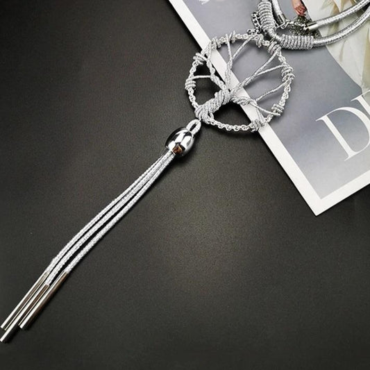 Tree Of Life Pendant Long Necklace With Tassel Silver Tone