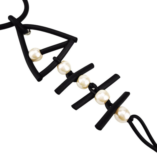 Recycled Rubber/Silicone Long Fish Bone Pendant with Faux Pearls Geometric Necklace