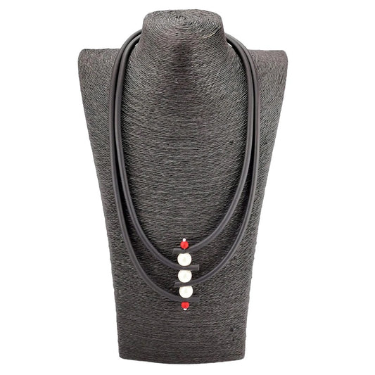 Recycled Rubber/Silicone Geometric Multi Strand Faux Pearl Accent Long Necklace