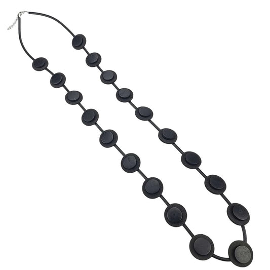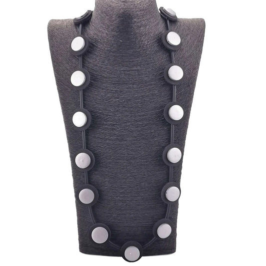 Recycled Rubber/Silicone Disk Pattern Long Geometric Necklace