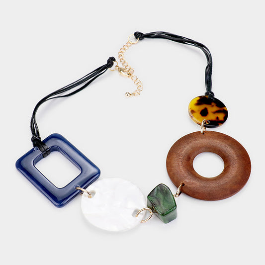 Geometric Wood Acetate Statement Necklace