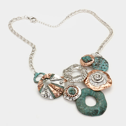 Tri Tone Abstract Hammered Metal Link Necklace