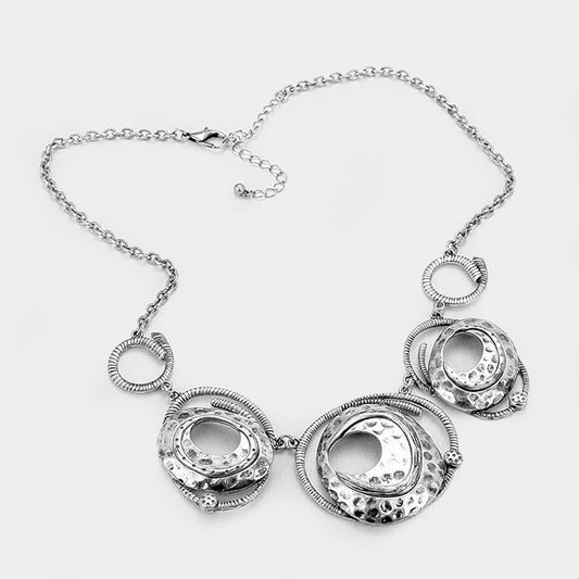 Abstract hammered metal hoop link necklace