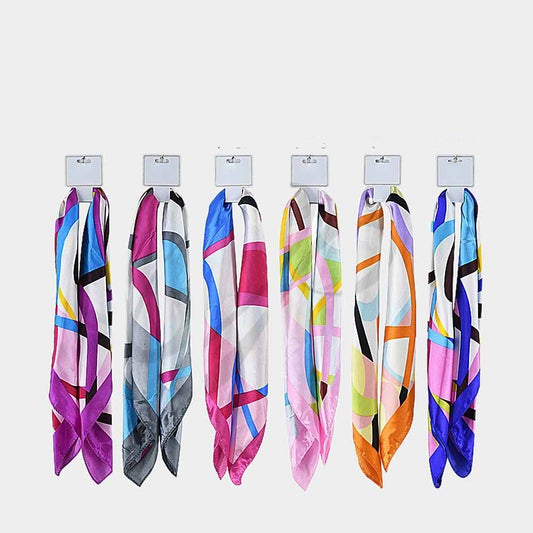 Abstract Print Satin Square Scarf 6 Colors 19x19